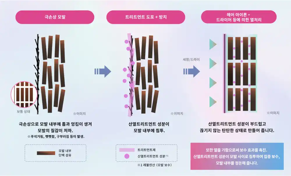 모발 내부에 산열트리트먼트 성분=레불린산이 충분히
